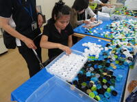 職場体験では、ペットボトルキャップの色の弁別や、トレイに並べる作業に取り組みました。
