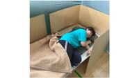 2年生は、一日防災学校で、長机や生徒机を使用して身を守る姿勢を確認したり、美唄市役所危機管理対策室の方から教えていただいたりしながら、避難所での生活体験をしました。