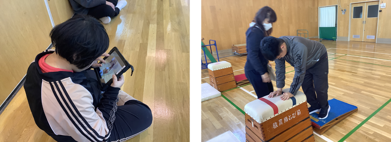 保健体育で、器械運動に取り組みました。「マット運動」「鉄棒」「跳び箱」「平均台」の中から1種目を選び、4回の練習期間を経て、年末最後の保健体育は発表会を行いました。練習期間中はタブレット端末で演技の視聴をしたり、生徒同士で演技の動画を撮り合ったりなどして学習を積み重ねてきました。発表会当日は、一人ひとりの発表を全生徒で鑑賞しましたが、練習とは違う緊張感も味わいながらの発表となり、達成感もひとしおだったようです。
